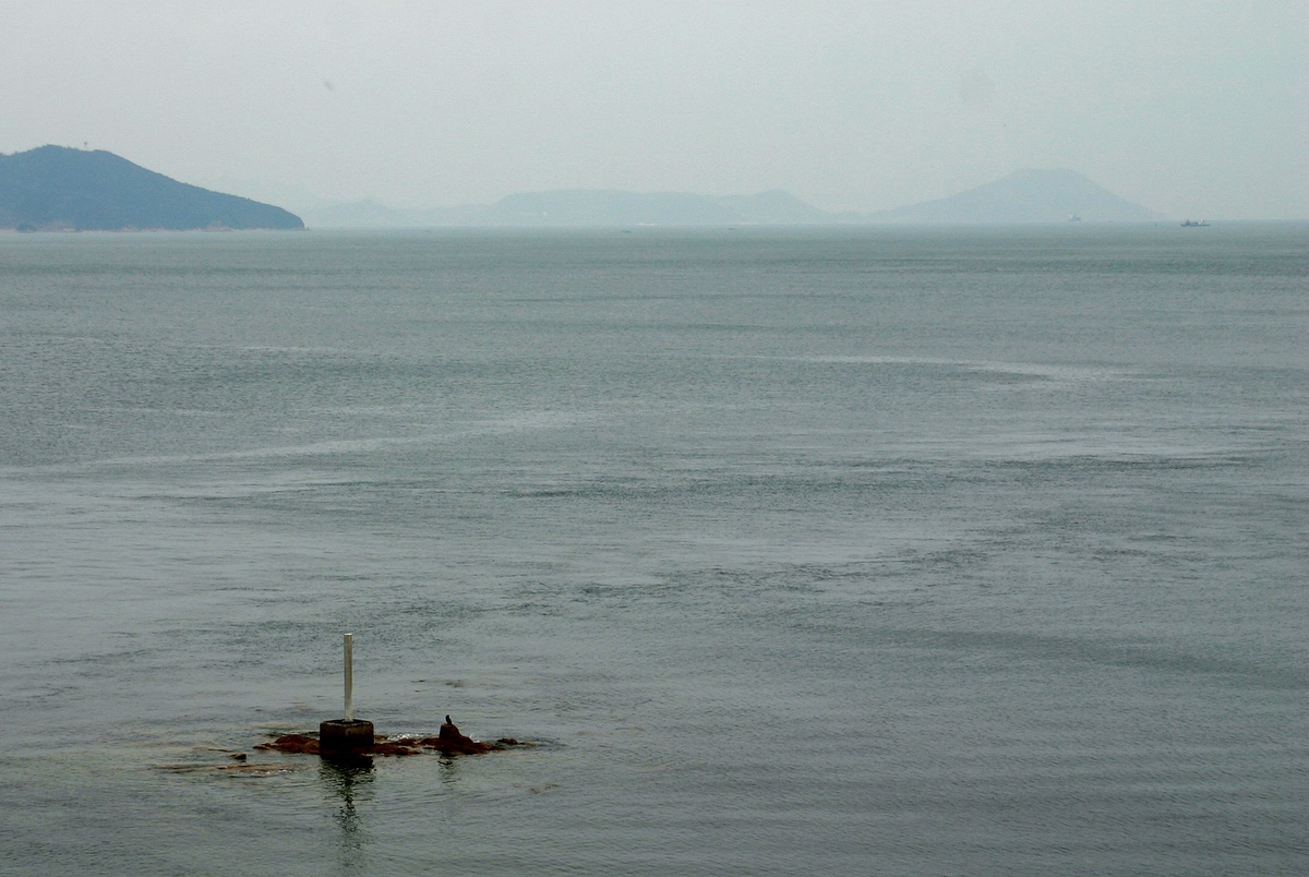 the photo is actually taken from the land; he was just hanging out in the water next to that rusty ship in the top picture. there were lots of them in the ocean down there, about as long as your forearm.