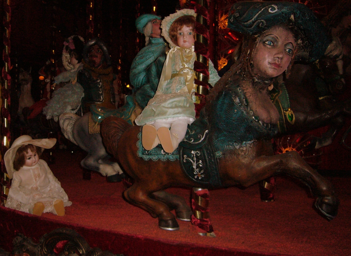 A: It was a three-story indoor carousel with ten or so tiers of dolls.